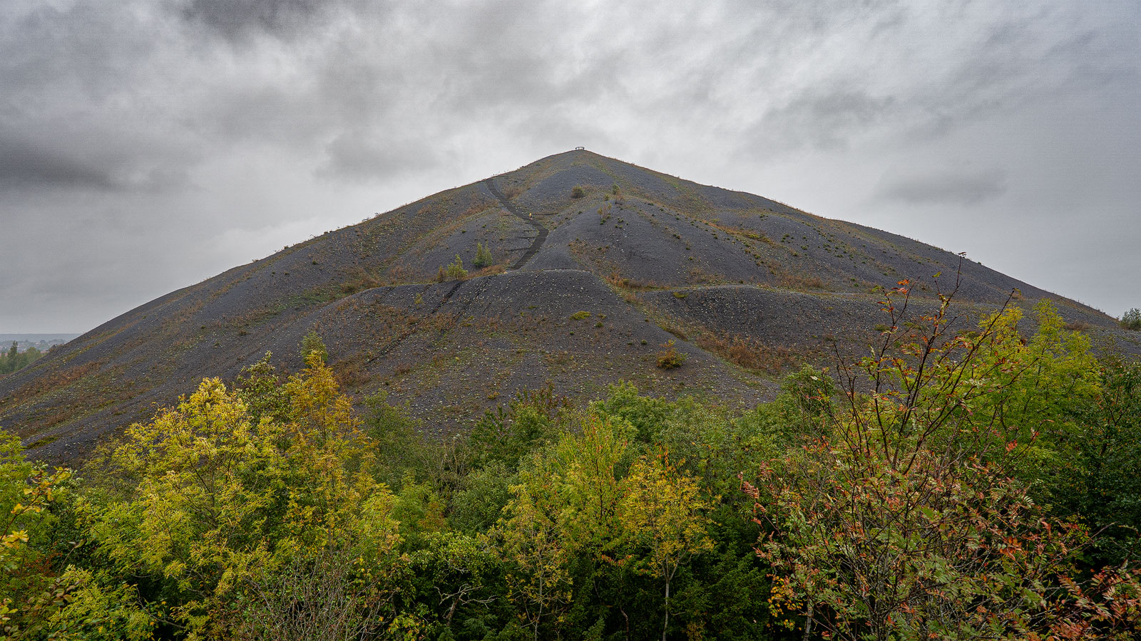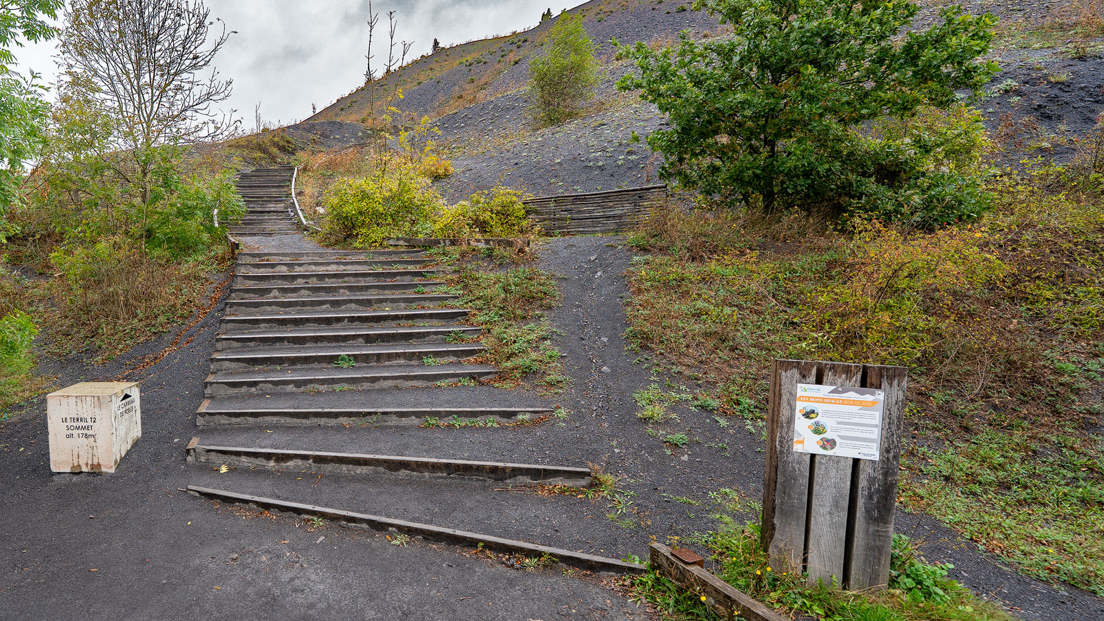 Entstanden sind sie in den 1960er Jahren, als man hier fleissig Kohle förderte. Alles, was nicht verwertbar war – Gestein, Schlacke, Kohlereste – landete auf den Halden. So wuchsen die Zwillinge Stück für Stück in den Himmel. Heute erinnert nichts mehr an eine „Abfallhalde“. Stattdessen hat sich hier ein einzigartiges Ökosystem entwickelt. «Zwischen schwarzem Gestein wachsen Blumen, Sträucher und sogar seltene Pflanzen wie der „pavot cornu“. Vögel zwitschern, Insekten summen – die Natur hat sich ihr Terrain zurückgeholt.» Dies schreibt der Prospekt, heute zwitschert gar nichts, es schifft in Strömen. Und seltene Pflanzen sehen wir auch kein, oder mindestens nicht bewusst, weil wir nicht wissen, welche selten sind und welche nicht.