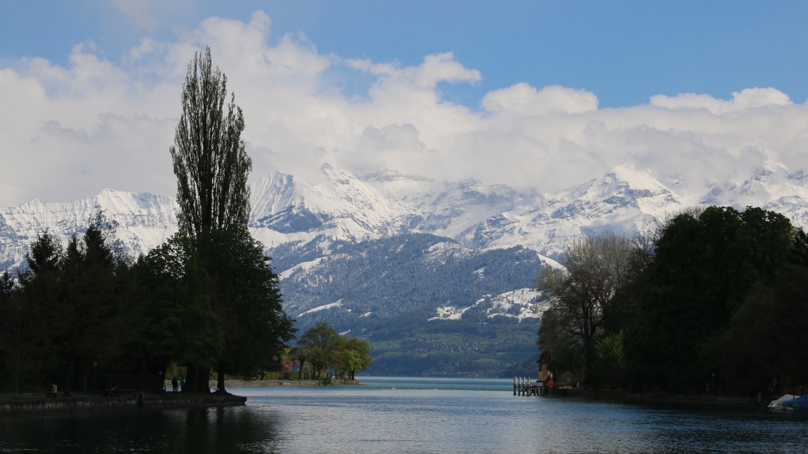 Nach meinem Termin spazieren wir dem See entlang bis in die Altstadt, dann zum Schloss hinauf und dann irgendwann wieder zurück. Hinter jeder Ecke sehen wir etwas interessantes, Schloss Schaudau inklusive Park, die obere und untere Schleuse und was weiss ich noch alles. Und im Hintergrund die tiefverschneiten Bergen des Berner Oberlandes. Man muss also jeweils gar nicht weit fahren, das Schöne kann auch nahe sein.