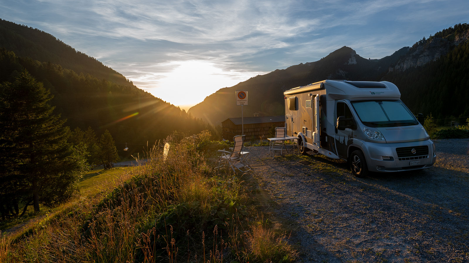 Aber zurück zu heute, wir haben Hochsommer und eine Hitzewelle und wir stehen als einziges Womo da. Wollen die Leute nicht in die Höhe? Oder haben alle das Gefühl, die Stellplätze sind voll? In der Schweiz auf alle Fälle nicht, hier hat es genügend Platz in den Bergen.