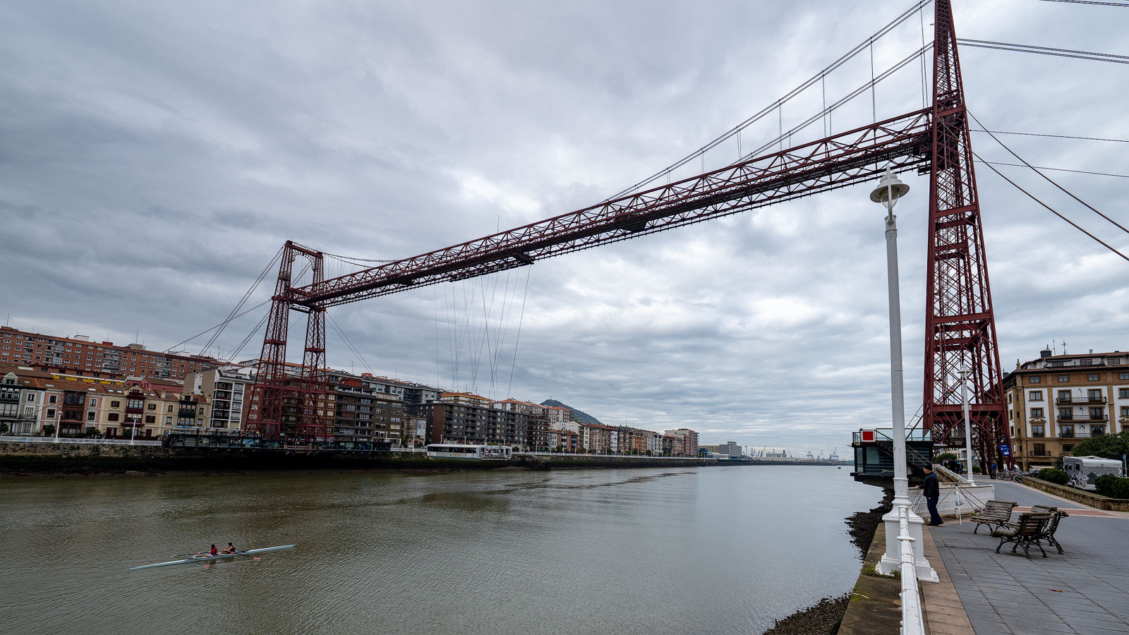 Wir fahren durch Bilbao und nützen den Sonntag aus, ohne Chaos, ohne viel Verkehr geht es heute ganz easy. Im Stadtteil Las Arenas sehen wir die Brücke hoch in den Himmel ragen, allerdings müssen wir zuerst einen Bogen fahren und die Brücke von Süden her anfahren. Gemäss Google-Map ist dort die einzige Wartezone.