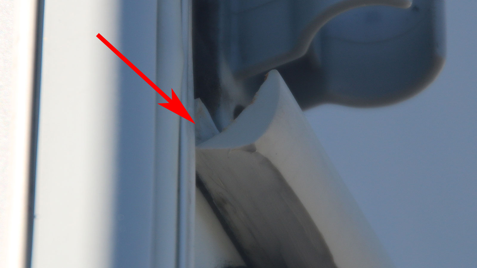 Das Anbringen der Regenleiste finde ich dann etwas tricky, wenn es wirklich halten soll. Das Hauptproblem sind die Enden der Regenleiste. Sie biegen sich immer von der Rückwand weg. Es liegt warscheinlich daran, dass mit der dünnen Aluschiene hinten und dem weichen Gummi vorne verschiedene Materialen aufeinander treffen und die ganze Schiene gerollt geliefert wird. Hartnäckig will sie immer in die Position, die sie im Paket inne hatte. Selbst eine Woche auf einer geraden Fläche mit Klebeband angekelbt, half nicht viel, vor allem an den Enden.