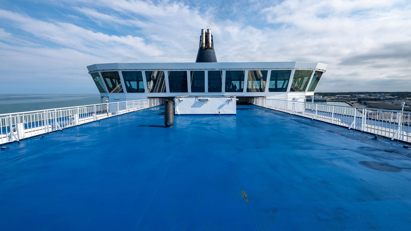 Aber von Anfang an. Wir fahren vom Camping Hirtshals die vier Kilometer zum Hafen, warten dort in der Autokolonne mit den gepackten Rucksäcken. Gemäss Webseite darf nur eine Person im Auto sein, die andere muss durch den Gangway auf die Fähre. Anita ist etwas nervös, ich auch. Schliesslich müssen wir für drei Tage alles mit auf unsere Kabine nehmen. Wird es kalt, bleibt es warm, was brauchen wir?
