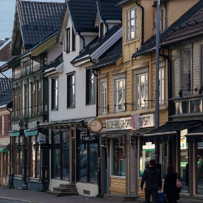 Jetzt geht’s schnell, Fahrräder runter, Fototasche montieren und los in die Stadt. Wir merken, ins Fussgängerzentrum sind es nur gerade einige Meter, können wir also später noch machen, also kurz zurück und natürlich über die Brücke. Es ist ein bisschen kriminell, viele Fussgänger und Fahrradfahrer in beide Richtungen, nur ca. 1.10m breiter Streifen zwischen Leitplanke und Geländer für diese zwei Verkehrsteilnehmerkategorien. Aber wir kommen heil hinüber und merken, dass die andere Seite Brückenseite wegen Baustelle gesperrt ist. Normalerweise kommen sich die Fussgänger und Fahrradfahrer also nicht in die Quere. Nach der Brücke sehen wir einen Wegweiser mit einer Seilbahn drauf, dem wir natürlich interessiert folgen. Einen Kilometer später Ticket gelöst und schon fahren wir gemütlich auf den Hausberg von Tromsø.