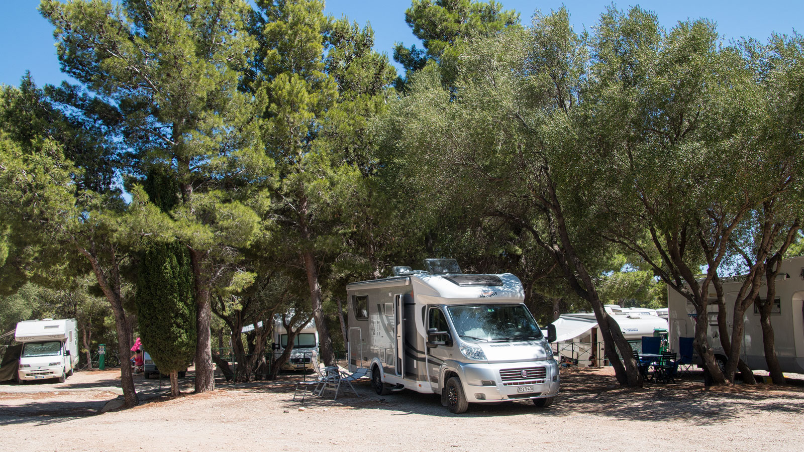 Das Tor ist noch wegen Siesta zwischen 12:30 und 14:30 Uhr geschlossen, aber diese 10 Minuten Wartezeit benützen wir, um den Platz zu inspizieren. Auch hier gibt es noch genügend freie Stellplätze und wir bekommen pünktlich zur Öffnungszeit einen nach Campingwart „Premiumplatz“ am Schatten. Wie wenn wir das nötig hätten, ist es doch nur knapp 30 Grad.