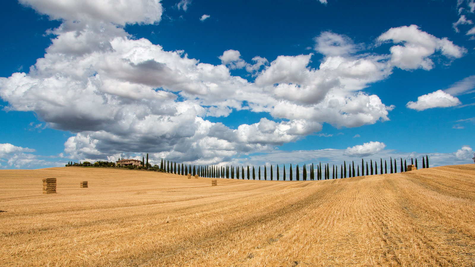 Wir fahren vom Meer in die richtige Toskana, wo die Landschaft eben typisch Toskana ist