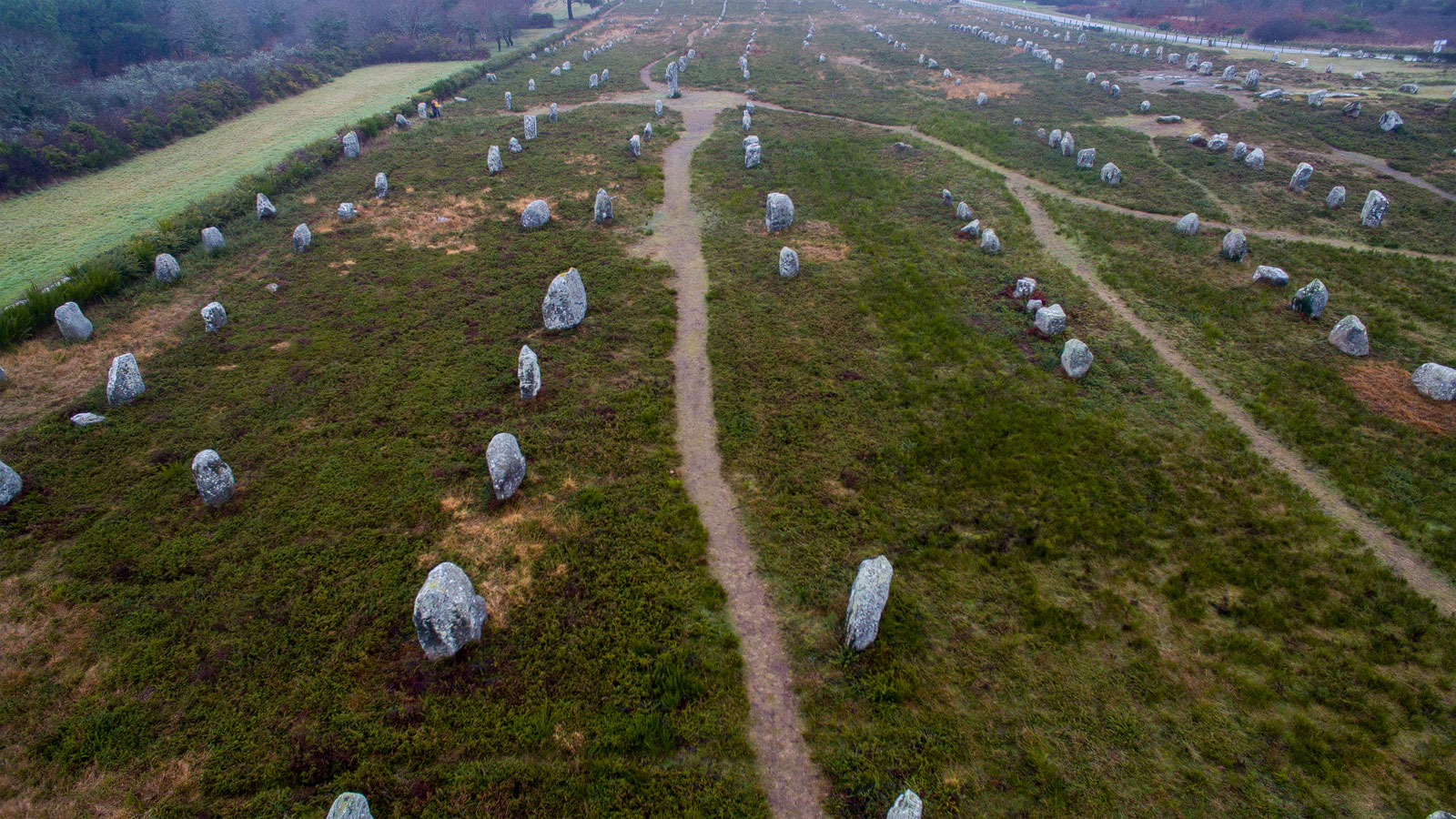 Auf dem Parkplatz sind wir ganz alleine und überlegen uns, ob wir hier übernachten sollen. Ab 17 Uhr ist das Besucherzentrum geschlossen, das Museum sind sie momentan sowieso grad am Renovieren. Plötzlich um 17 Uhr hört der Regen auf, das ist die Gelegenheit. Ich packe meine Drohne und marschiere wieder zu den Steinfeldern. Schliesslich habe ich meine Drohne extra nur wegen diesen Steinreihen mitgenommen, denn die Fotos hier sehen aus der Luft sicher wesentlich besser aus, wie von Stand.