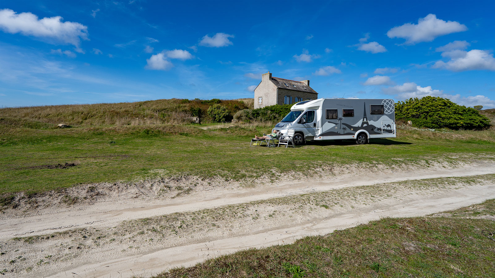Der Morgen ist wundervoll mit toller Aussicht. Sollen wir nochmals einen Tag hier bleiben? Aber anderswo könnte es doch auch schön sein, oder? Also packen wir zusammen und fahren 91km nach Lampaul-Plouarzel auf den dortigen Stellplatz. Wir waren vor 8 Jahren schon mal hier und es hat uns dazumal unglaublich gut gefallen, auch wenn es Januar war. Ich habe etwas angst, dass dort alles voll ist, also fahren wir schon kurz nach 9 Uhr los.