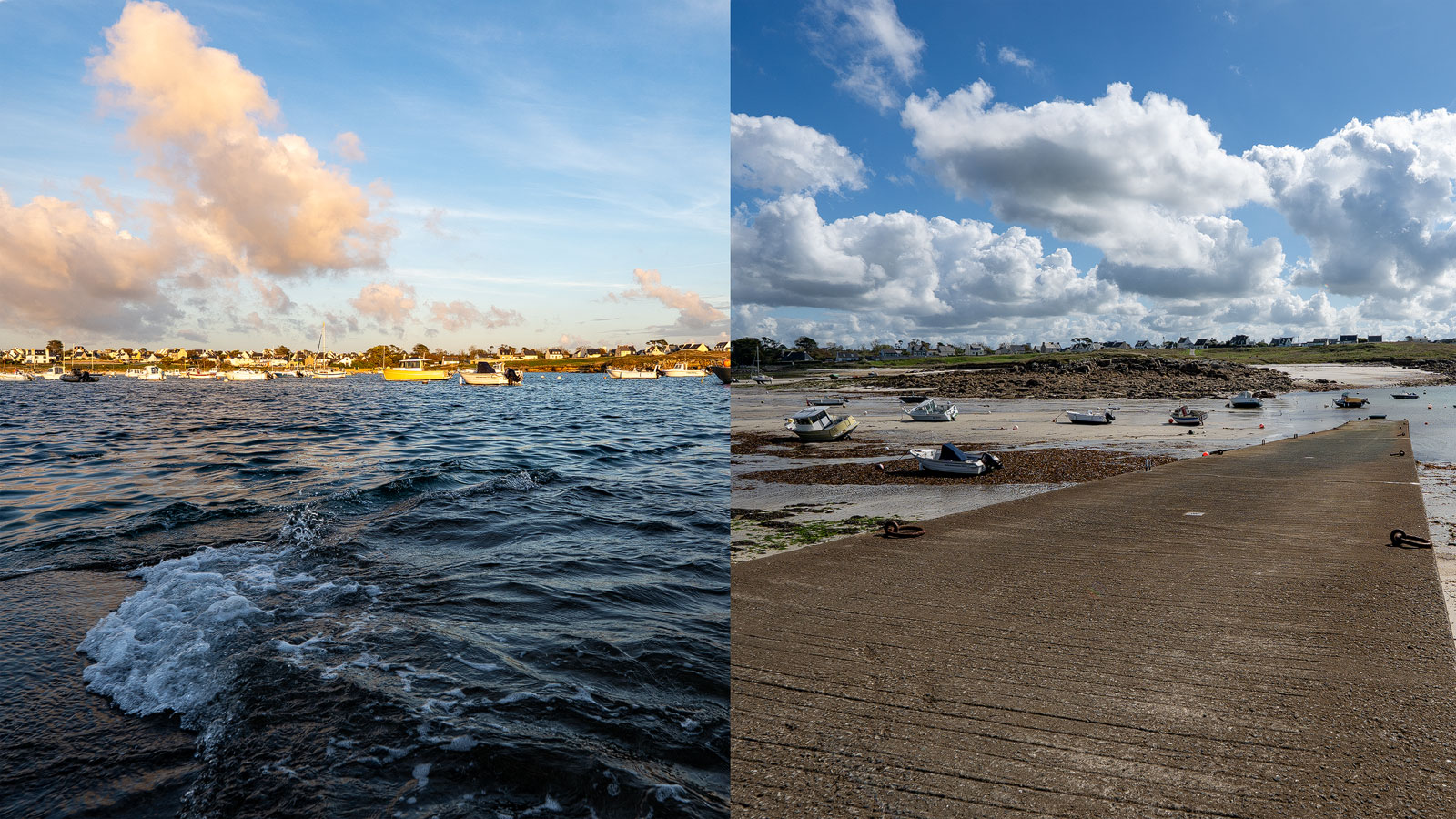 Danach, mit rotem Kopf, wollen wir um 19 Uhr nochmals ans Meer, um ein paar Vergleichsfotos von Ebbe und Flut zu machen. Die meisten unserer gemerkten Fotospots sind nun aber bei Flut unter Wasser und gar nicht mehr zugänglich. Unglaublich, welchen Höhenunterschied das Wasser hier hat!