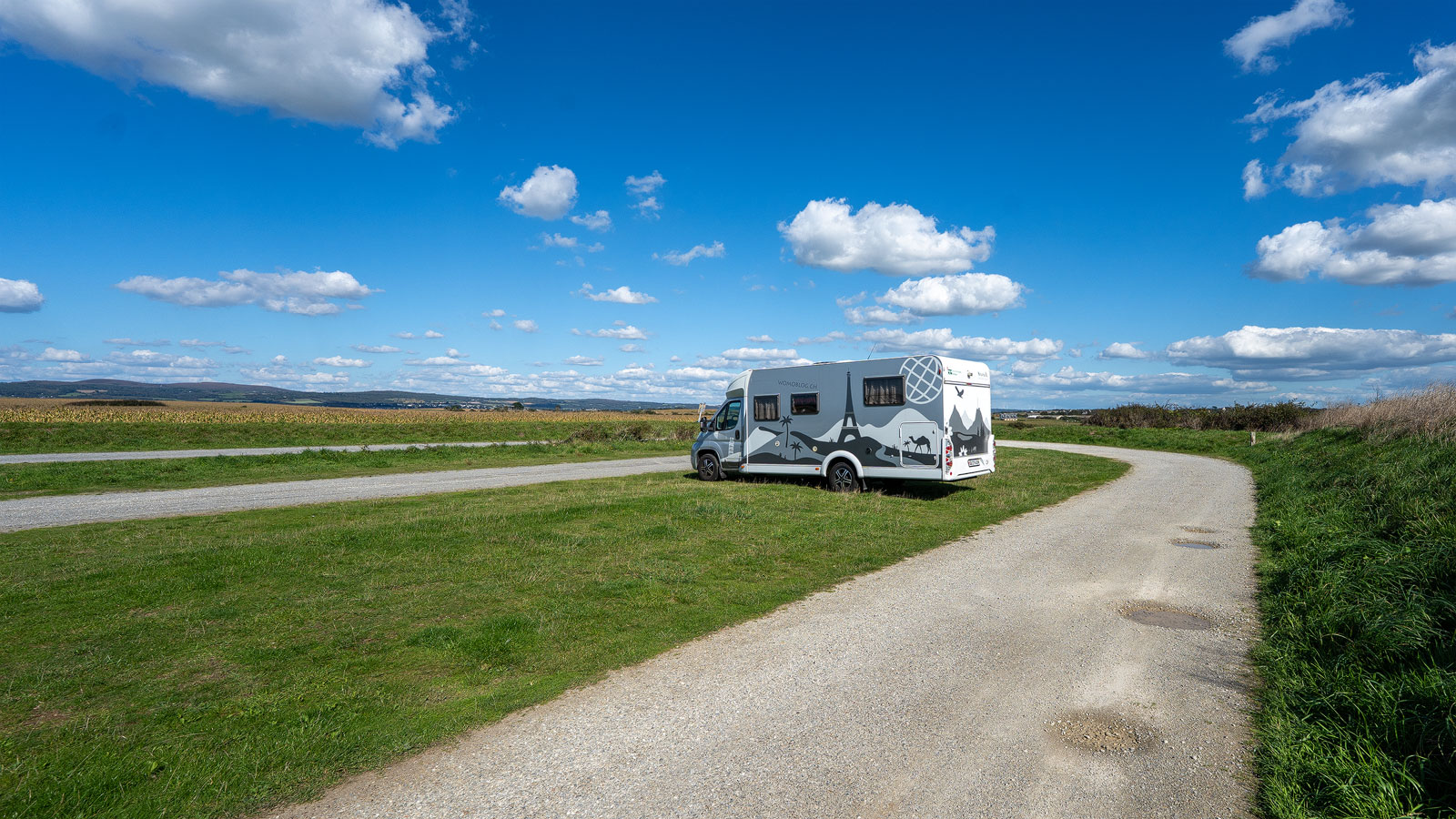 Danach geht es weiter und 20km später sind wir an unserem Tagesziel, dem Parkplatz vom Point du Raz. Dies ist eine felsige Landzunge, die weit ins Meer hinausragt, oft wird er als „ Penn ar Bed “ genannt (auf Deutsch: Das Ende der Welt). Andere nennen es die Antwort der Bretagne auf das Nordkap. Der Raz de Sein, die Meerenge vor dem Kap, ist berüchtigt für extrem starke Strömungen. Segler und Fischer fürchten sie bis heute.