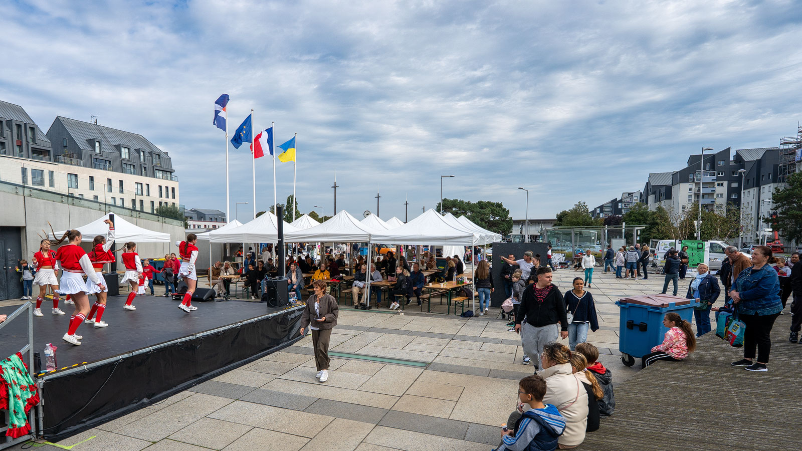 Nach ein paar hundert Metern landen wir schon mitten in einem Quartiermark oder Quartierfest (Anita meint, es sei ein Flohmarkt, aber da einigen wir uns heute nicht). Es hat viele Leute, Marktstände, Musik, Festwirtschaften. Wir sehen uns gemütlich um und wenn wir nicht auf dem Hinweg wären, hätten wir eine alte Hand-Kaffeemühle gekauft. Aber mitschleppen den ganzen Tag, da haben wir keine Lust drauf.